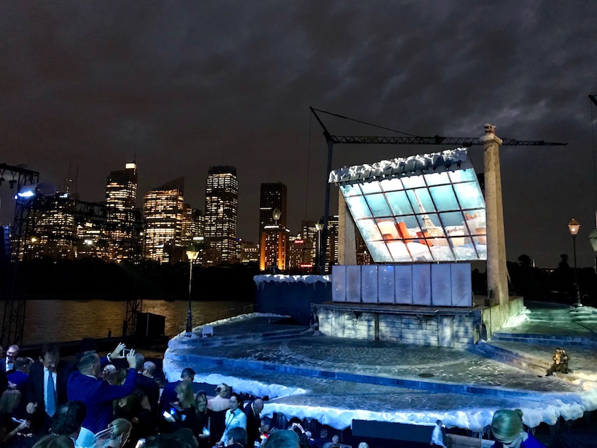 After a gloomy week of relentless rain leading up to opening night, miraculously as the sun set on March 23rd, the sky cleared and the moon lit-up La Boheme’s floating Parisian stage. The spectacular setting floated above Sydney Harbour at the base of the iconic Fleet Steps at Mrs Macquarie Chair.